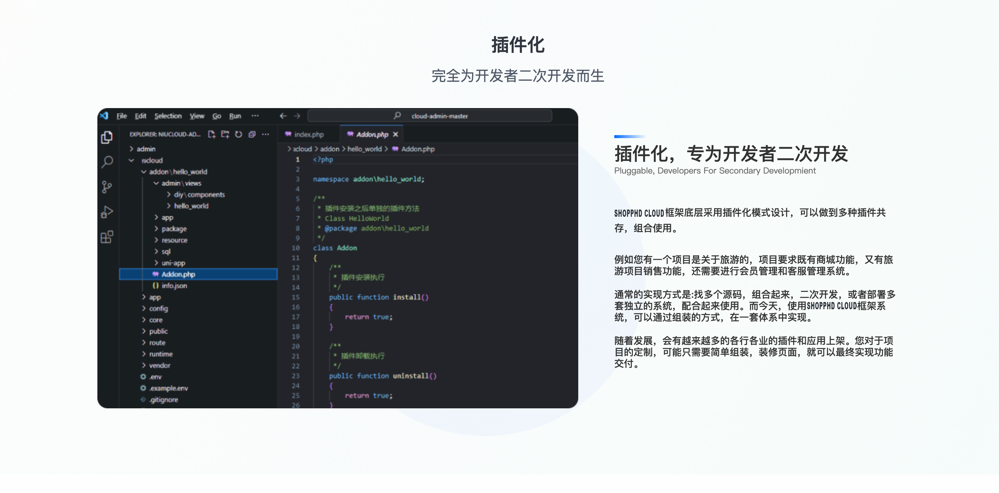 企业级SaaS平台架构精心设计,每一行代码用心编写,为开发者而生 店博士CLOUD框架有JAVA SaaS版、JAVA 独立版、PHP SaaS版、PHP 独立版四大产品体系